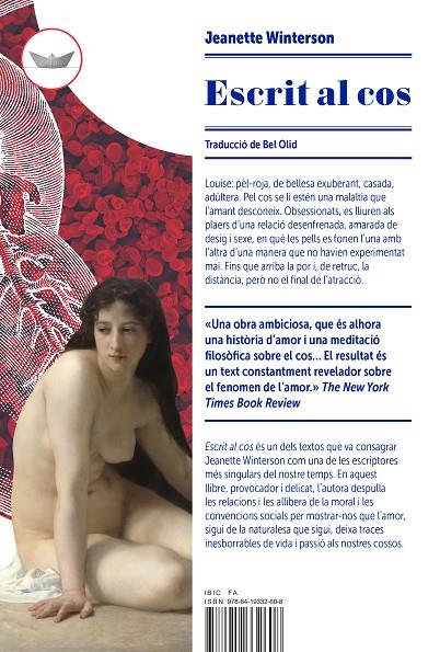 Escrit al cos és un dels textos que va consagrar Jeanette Winterson com una de les escriptores més singulars del nostre temps. En aquest llibre, provocador i delicat, l’autora despulla les relacions i les allibera de la moral i les convencions socials per mostrar-nos que l’amor, sigui de la naturalesa que sigui, deixa traces inesborrables de vida i passió als nostres cossos.